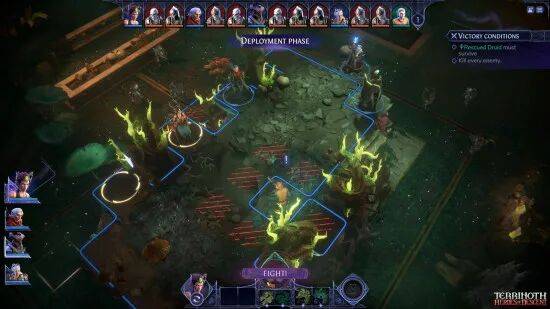 Demo 包含两个地牢,其中一个是教程关卡。你将操控一支冒险者小队 —— 每次上场四人,但可以从更大的阵容里挑选 —— 他们能在相当大的地图上自由移动,随后进入回合制战斗。